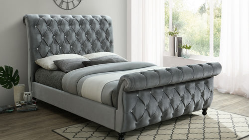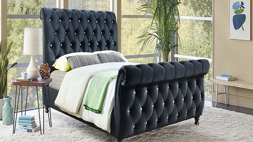 LUNA NAILHEAD PLATFORM BED IN BLACK OR GRAY VELVET