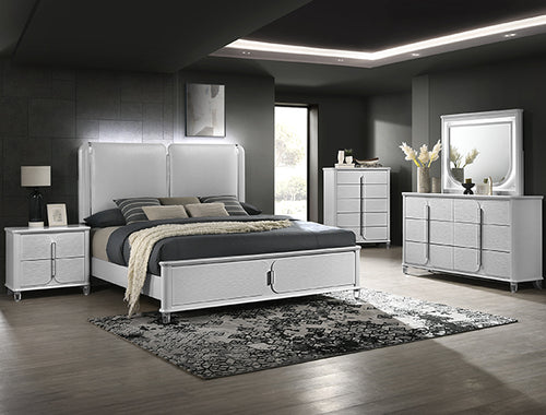 WHITE 5PC GLASS DINETTE SET, QUEEN 6PC WHITE BEDROOM SET, AND 2PC BLUE VELVET SOFA SET 3 ROOM PACKAGE