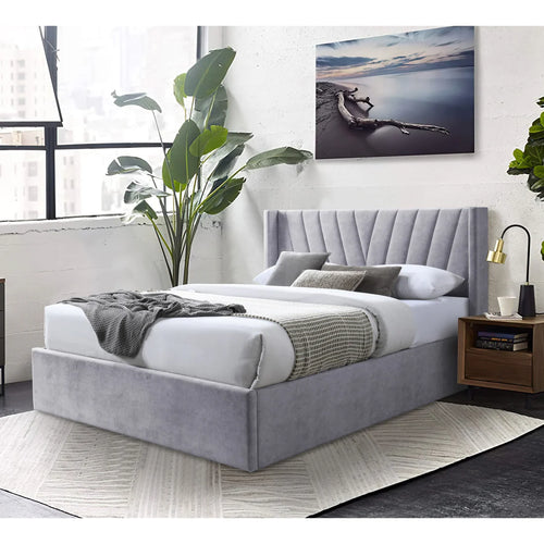 WINGED HEADBOARD PLATFORM BED IN GRAY