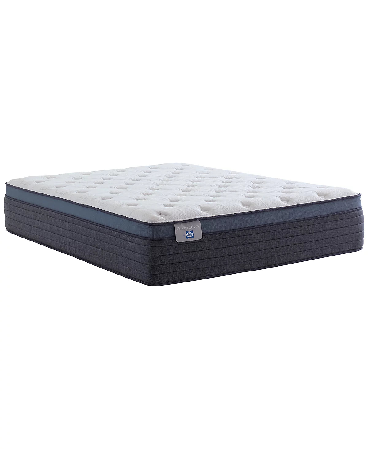 The exclusive Charter Club by Sealy Mystic Bay medium Euro top mattress features trusted Sealy® quality with an upgraded high coil density pocketed spring support system that has reinforced Steel Quantum Edge® coils. Its heavy-duty pocketed springs reduce movement, allow for an undisturbed side-to-side sleep while layers of Isotonic™ memory foam and gel foams offer pressure relief and comfort. A stretch knit cover with cooling fibers and lurex accent helps you sleep better.